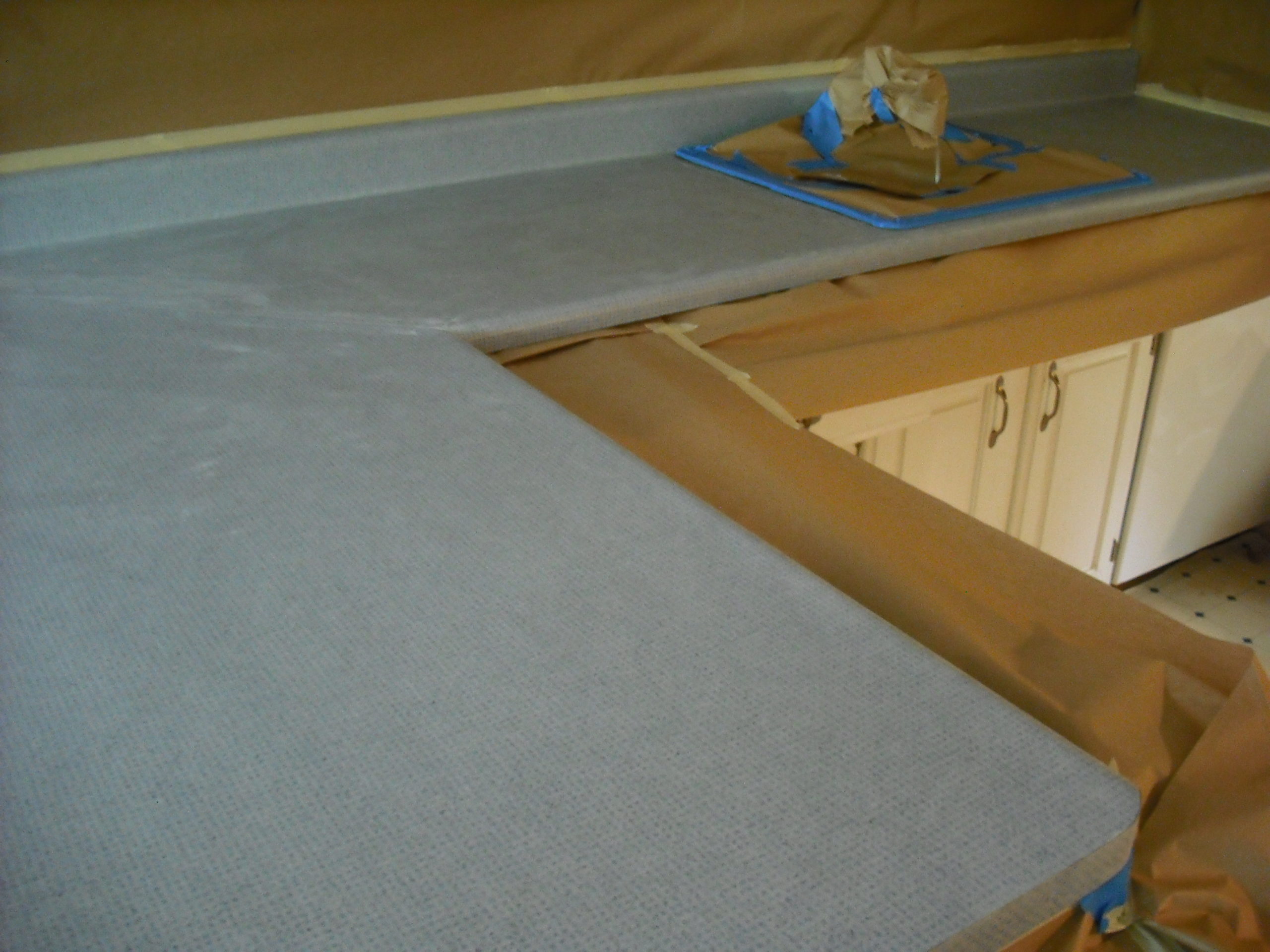 The next step is to aggressively clean the entire countertop surface.
